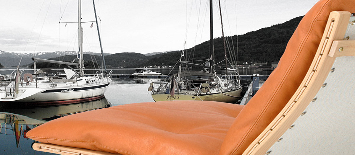 ハイバックアーム付きは、スマートな牛革アームがついた最上位モデル。アーム部も天然素材(木と牛革のしなり)を利用した、人に優しいクッション性があり、頭部から腕まで包み込まれるような感触は、至福の午睡(SIESTA)に誘ってくれるでしょう。